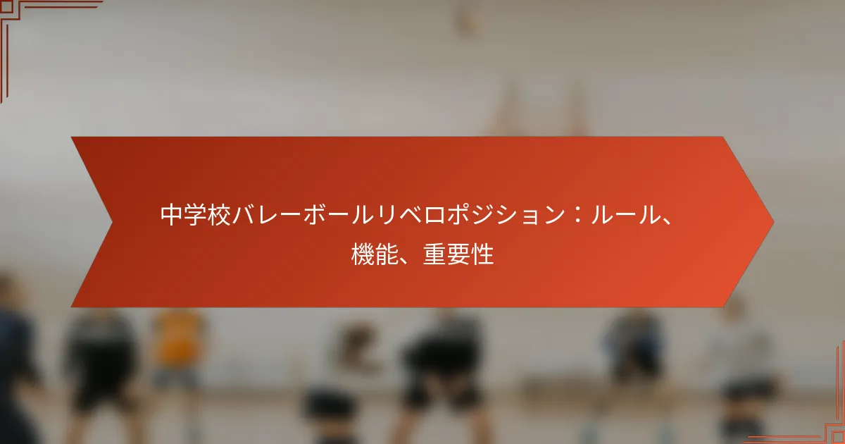 中学校のバレーボールにおけるリベロは、守備において重要な役割を果たし、サーブを受けたり攻撃を掘り返したりすることに焦点を当てています。この専門的なポジションは、効果的なコミュニケーション、リーダーシップ、戦略的なプレーを通じてチームのパフォーマンスを向上させます。