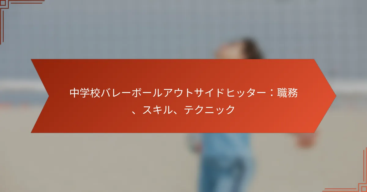 中学校のバレーボールのアウトサイドヒッターの主な職務には、攻撃プレーの実行、防御戦略への貢献、効果的なサーブが含まれます。このポジションは得点を獲得し、コート上でのチーム全体のパフォーマンスをサポートするために重要です。
