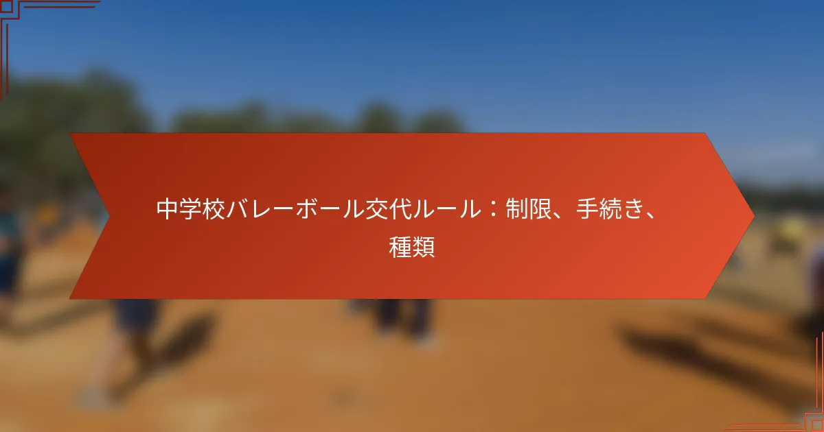 中学校のバレーボールでは、交代は選手のローテーションを管理し、最適なチームパフォーマンスを確保するために不可欠です。主な交代の種類には、通常の交代、リベロ交代、怪我に関連する交代、戦略的交代が含まれます。各タイプには、コーチや選手が試合中に効果的に利用するために理解しなければならない特定のルールと条件があります。